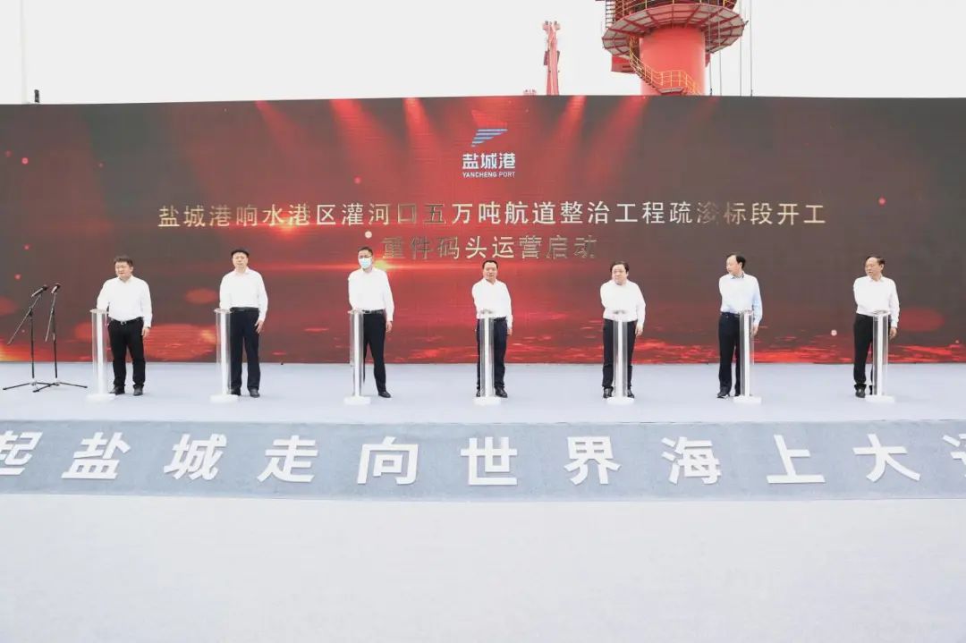 5月19日,鹽城港響水港區(qū)灌河口五萬噸航道整治工程疏浚標段開工暨重件碼頭運營啟動儀式成功舉行。鹽城港集團黨委書記、董事長、總經(jīng)理周正雄,響水縣委書記郭超出席活動并分別致辭。響水縣委副書記徐健,濱海港工業(yè)園區(qū)副書記、副主任戴道,鹽城港集團黨委委員、紀委書記周旭東,響水縣相關部門負責同志,鹽城港響水港區(qū)相關負責同志等參加。