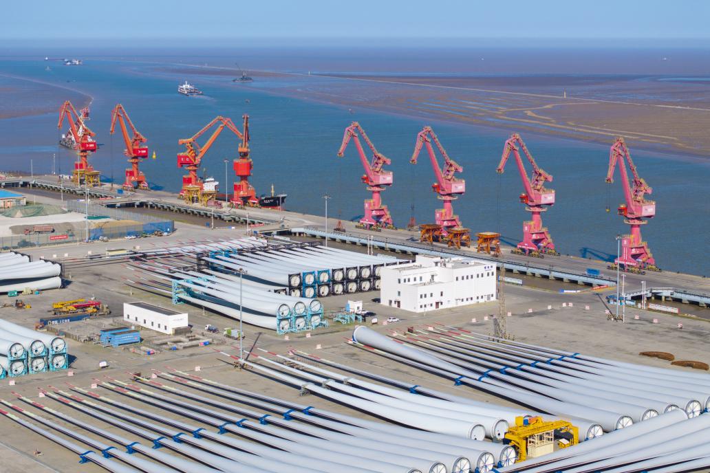 一體化不僅是硬件的聯(lián)通,更是服務(wù)模式的革新。鹽城港創(chuàng)新構(gòu)建“港口服務(wù)產(chǎn)業(yè)、產(chǎn)業(yè)支撐港口”聯(lián)動機(jī)制,精準(zhǔn)布局物流園區(qū),深化“公鐵水”多式聯(lián)運(yùn)體系,并以“一企一策”服務(wù)機(jī)制為腹地企業(yè)量身定制物流方案,“海上聯(lián)結(jié)南北,內(nèi)河貫通東西”的物流新格局日益成熟。“十四五”期間,港口風(fēng)電設(shè)備吞吐量累計近1.3億噸,成功接卸國內(nèi)最長147米風(fēng)電葉片;悅達(dá)起亞汽車通過濱海港區(qū)實現(xiàn)整車出口,為“鹽城造、鹽城出”添上濃墨重彩的一筆。