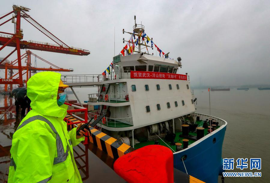 2月28日,停靠在碼頭的“漢海5號”準備首航駛往上海洋山港。新華社發(李海貴 攝)