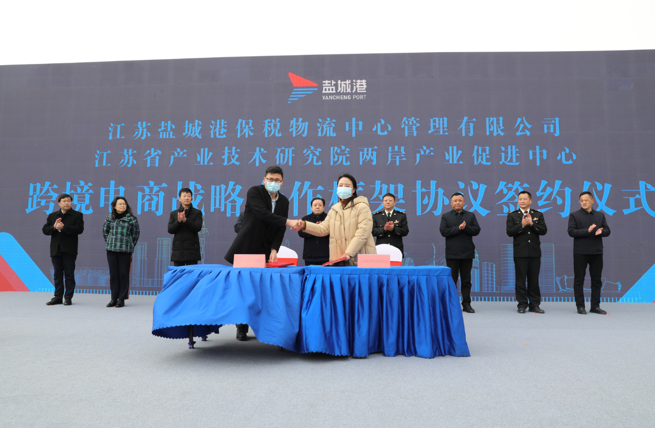 周正雄在致辭中表示,市第八次黨代會賦予了鹽城港“架起鹽城走向世界海上大通道”的時代使命。集團高度重視、全力提升服務外向型經濟發展的能力和水平,高位組建了鹽城港保稅物流中心,推動保稅功能完善、業務多樣化。此次與省產業技術研究院兩岸產業促進中心簽訂戰略合作協議,雙方將本著“互信互惠”的原則,在跨境電商、倉儲運輸、人才培育、供應鏈科技等領域構建全面、長遠、深入的戰略合作伙伴關系。集團將著力深化在跨境電商領域的影響力,推進從港口2.0的物流港階段向港口3.0的進出口港階段轉型,不斷放大港口對物流、人流、資金流的集聚效應。同時,也請各位領導一如既往地關心、支持鹽城港發展,集團將以本次活動為契機,在服務全市融入“雙循環”實現高水平對外開放上奮力作為,以高質量發展的過硬實績回報各位領導的關心與厚愛。