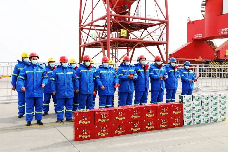 在大豐港區集裝箱碼頭,周正雄和堅守崗位的工作人員一一握手,感謝大家的默默奉獻,為保障港口安全平穩運行而付出的努力,并向他們送上慰問品。他說,去年以來,集團統籌做好安全生產和疫情防控各項工作,并取得了良好的業績,這離不開全體員工的共同努力和無私奉獻,離不開員工家屬對集團的信任和關心,更離不開家屬們對員工的支持和理解。希望全體員工按照集團黨委的要求,切實利用好“早晨會、晚匯報”這一工作模式,對晨會的形式和內容進行再融合再提升,更加全身心地投入工作,全力打造出一支港口鐵軍隊伍,為鹽城港人樹立榜樣,全面激活港口活力,增強發展后勁,為完成全年和各項工作目標而繼續努力、繼續奮斗。