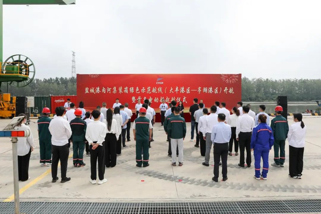 為積極策應“水運江蘇”建設,大力發展綠色低碳內河航運,推動鹽城港航事業高質量發展。8月6日,鹽城港集團隆重舉行內河集裝箱綠色示范航線開航暨首條電動船起航儀式。集團黨委副書記、董事、總經理陸帥,集團副總經理袁欣,集團黨委委員、副總經理孫永峰,相關單位及部門負責同志,船貨代企業代表等參加。