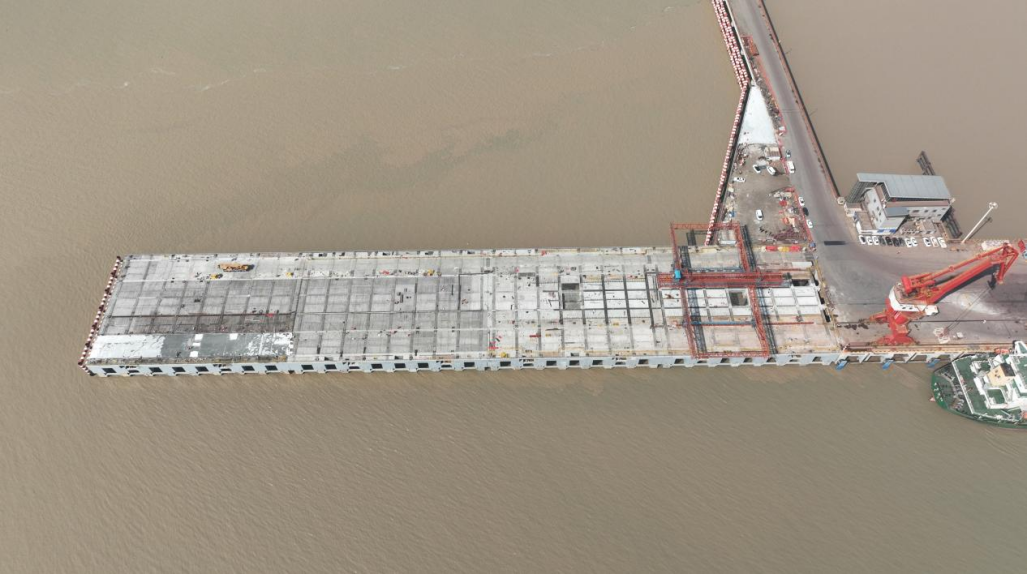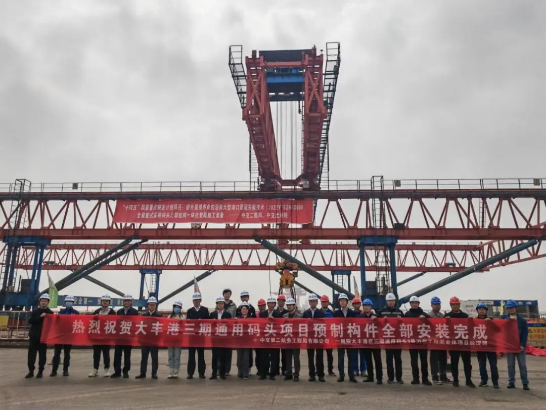 隨著最后一榀預(yù)制面板在智能筑港機(jī)的精準(zhǔn)操控下平穩(wěn)就位,鹽城港大豐港區(qū)三期通用碼頭3號泊位項目圓滿完成全部預(yù)制構(gòu)件安裝任務(wù)。這一重要節(jié)點不僅標(biāo)志著碼頭主體工程建設(shè)進(jìn)入最后沖刺階段,更意味著由項目建設(shè)、設(shè)計、施工等參建各方聯(lián)合中國海洋大學(xué),依托國家重點研發(fā)計劃開展的核心技術(shù)攻關(guān),為該項目量身打造的“智能積木拼裝師”——全球首創(chuàng)裝配式碼頭一體化綠色智能筑港機(jī)成功完成示范應(yīng)用。