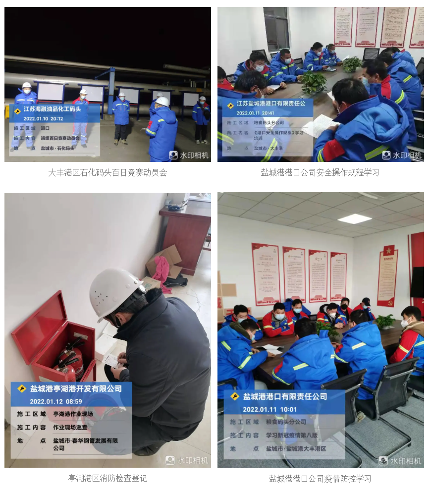 1.安全生產、疫情防控工作常態化持續開展。鹽城港港口公司:安全、疫情防控日常巡查,班前會,防疫消毒;濱海港區:組織疫情防控演練,安全、疫情防控日常巡查,碼頭設備作業前安全檢查;大豐港區:安全日常檢查,防疫消殺;集裝箱集團:安全、疫情防控日常巡查,碼頭設備作業前安全檢查,抓好了日常消殺工作;投資集團:安全、疫情防控日常巡查,組織作業人員核酸檢測;陸港集團:作業現場、消防巡查,日常消殺;射陽港區:安全、疫情防控日常巡查,疫情防控演練,設備安全檢查,夜間安全巡查,安全交底;響水港區:安全、疫情防控日常巡查,開展一線人員核酸檢測,對作業區、辦公區防疫消殺;鹽城港保稅物流公司:開展安全、疫情防控日常巡查,組織作業區安全巡查,日常消殺工作;鹽城港項目公司:組織日常安全巡查,開晨會布置安全工作。