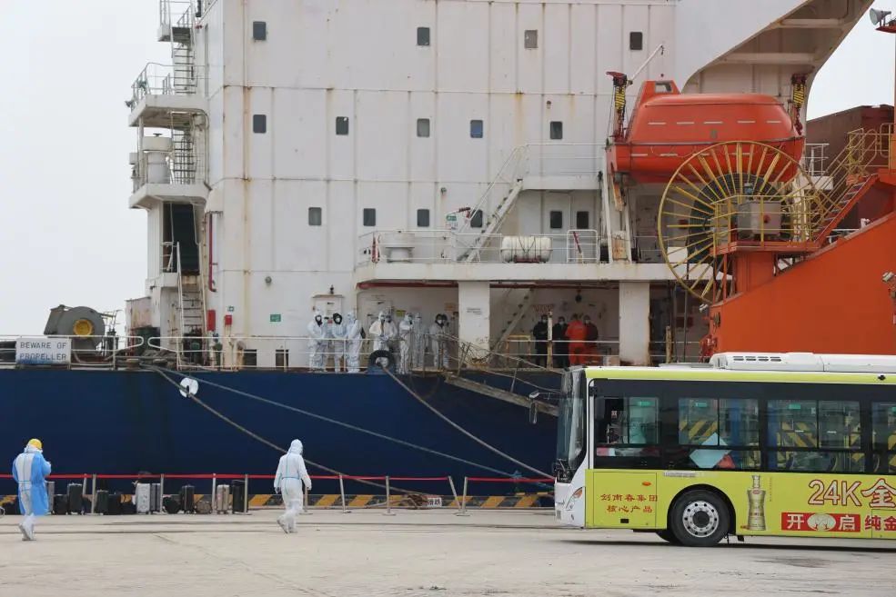 為確保中國船員換班工作“零等待”“零延時”,濱海港區(qū)第一時間啟動船員換班閉環(huán)管控工作流程和應急處置流程,與濱海縣聯(lián)防聯(lián)控機制各成員單位協(xié)同配合,確保換班中國船員自國門至家門的全程閉環(huán)管理。讓船員感受到回到家的溫暖。
