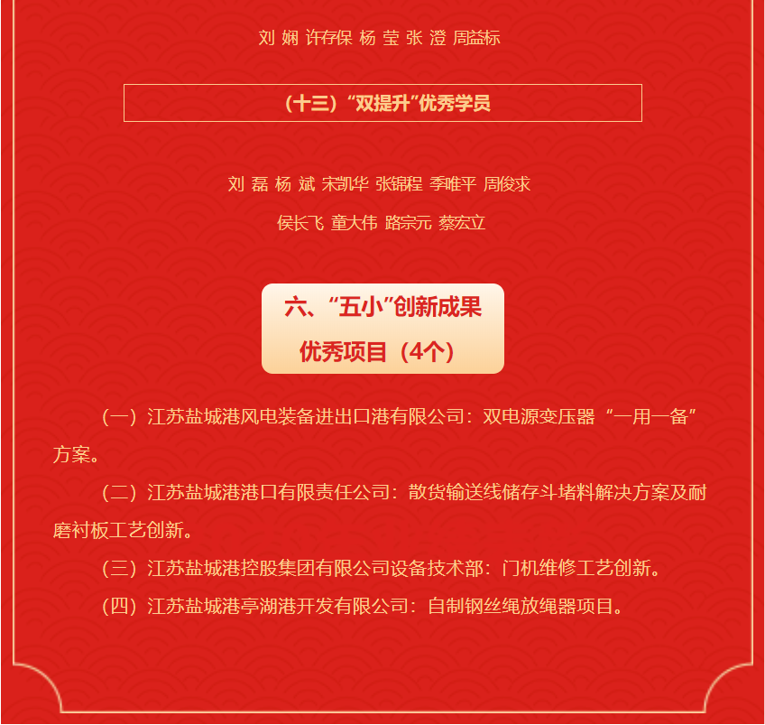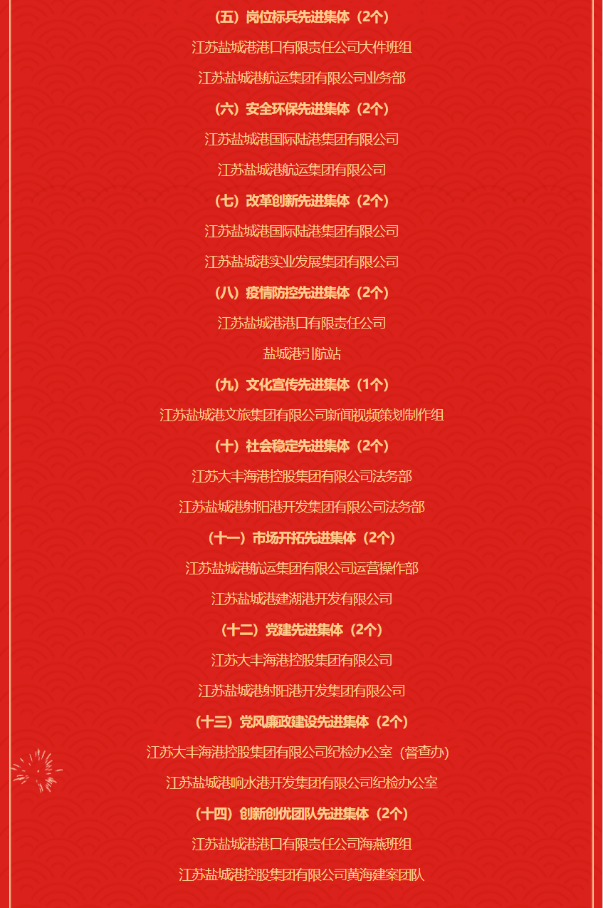 江蘇鹽城港控股集團有限公司 2021年度先進集體及個人名單