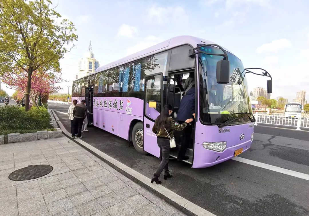 汽服公司的大巴準時發(fā)車,保障通勤,測溫、驗碼、登記必不可少。
