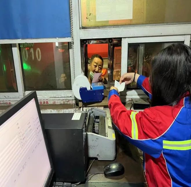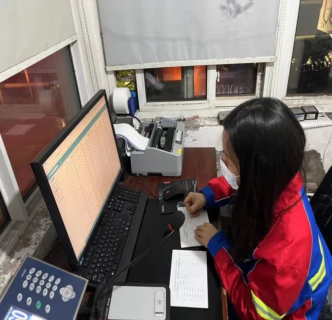 深夜的磅房里沒有一絲倦意,來往過磅的車輛一輛接著一輛,確認車號、填寫小票、記錄數據、協調客戶,這一系列工作就像糖葫蘆一樣串在一起,她們事無巨細、精益求精,從容應對,游刃有余。