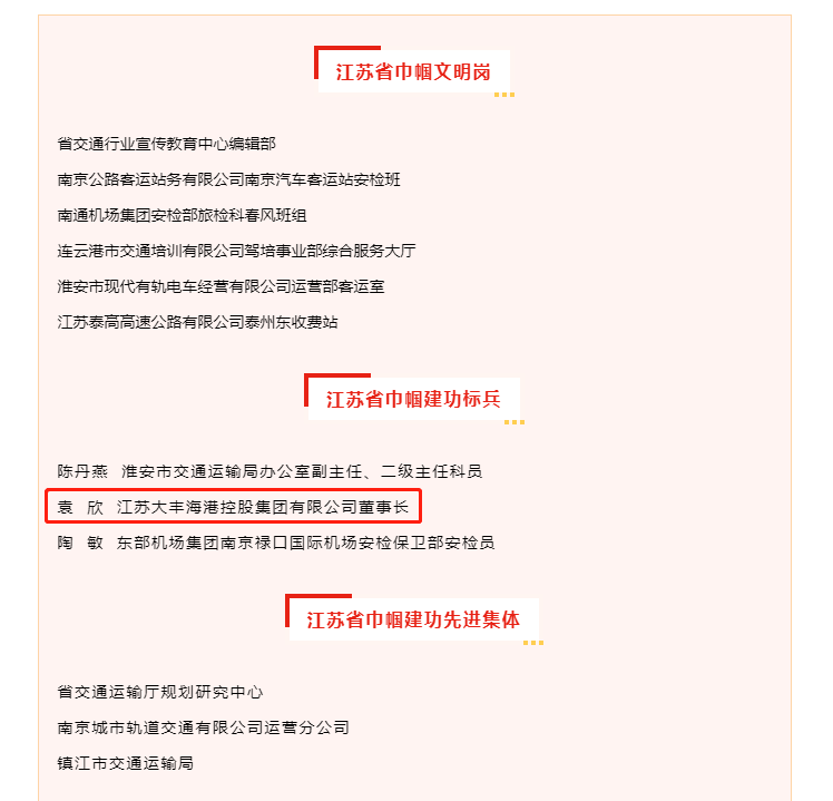 鏗鏘玫瑰展風(fēng)姿,交通巾幗譜華章。近日,2022年度全省城鄉(xiāng)婦女崗位建功先進(jìn)集體(個(gè)人)表彰名單出爐,袁欣同志榮獲“江蘇省巾幗建功標(biāo)兵”榮譽(yù)稱號(hào)。