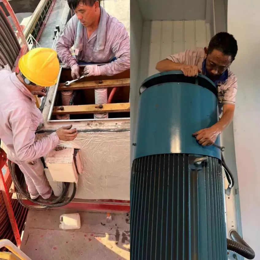 天氣炎熱,設備也常“中暑”。“2#門機出現分波過熱故障,門機跳電了”,早上7點,剛到港的修理電工大宋就接到前方司機的報修指令。大宋隨即和同伴趕到現場,經過排查,發現是左旋電機風機損壞。經過2個多小時的搶修,設備再次順利投入使用。搶修人員剛下門機還沒來得及喝口涼水,對講機里又傳來了1#門機整機跳電故障報修。經檢查判定這是一起因電纜滑環內外溫差導致設備內部有水凝造成的設備故障。此時戶外的溫度已達35℃,而門機機房經過陽光的烘烤已近40℃,搶修人員卻毫不遲疑,立即投入搶修工作......