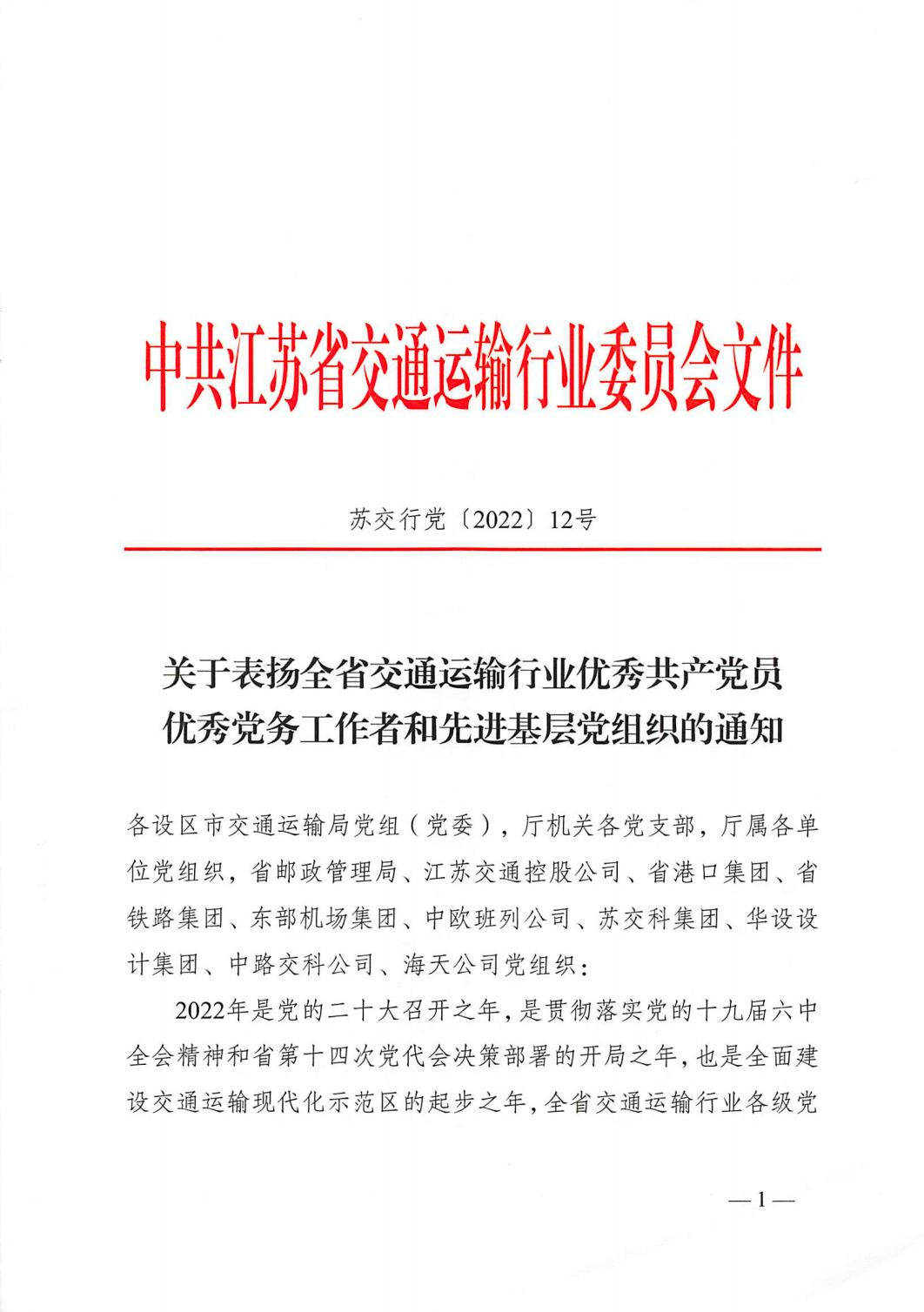 近日,中共江蘇省交通運輸行業委員會印發通知,對全省交通運輸行業優秀共產黨員、優秀黨務工作者和先進基層黨組織進行表揚,江蘇鹽城港港口有限責任公司黨總支榮獲“全省交通運輸行業先進基層黨組織”榮譽稱號。