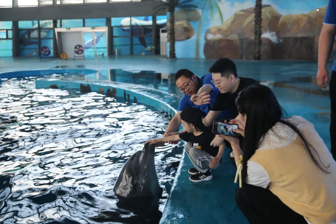 鹽城港大豐港區海洋世界是以海洋為主題的情景劇式互動體驗館,在這里,小朋友們觀看了海豚表演、了解了海洋知識。在柔和的音樂聲中,海豚開始表演節目,從水中一躍而上,濺起晶瑩的水花,而后如同身姿矯健的跳水運動員輕輕落入水中;它們在訓導員的指揮下,盡情地舞動著,展現著優美的舞姿。現場響起了一陣陣喝彩和掌聲,整個表演都充滿了靈性,觀眾們深深地被海豚的英姿所震撼。表演結束后,現場還有和海豚合影的機會,小朋友們大膽伸出雙手去撫摸它們,現場氣氛熱烈,小朋友們流連忘返。
