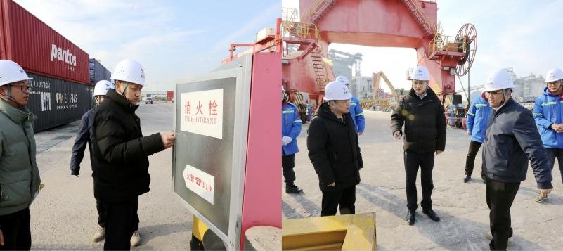 “安全制度落實(shí)到位了嗎?滅火器按時(shí)點(diǎn)檢了嗎?消火栓可以正常使用嗎?”航運(yùn)集團(tuán)主要負(fù)責(zé)人通過實(shí)地察看、聽取匯報(bào)、現(xiàn)場詢問等方式,詳細(xì)了解集裝箱老堆場、內(nèi)河碼頭、自動化集裝箱堆場、集裝箱碼頭等作業(yè)區(qū)域的安全環(huán)保措施執(zhí)行情況,對發(fā)現(xiàn)的問題現(xiàn)場提出整改意見,并強(qiáng)調(diào),一是要毫不放松抓好安全生產(chǎn)工作。堅(jiān)持底線思維,加強(qiáng)風(fēng)險(xiǎn)研判,強(qiáng)化責(zé)任落實(shí),加大對重點(diǎn)區(qū)域、重點(diǎn)部位的安全隱患排查力度,做到早發(fā)現(xiàn)、早處置。二是要不斷強(qiáng)化值班值守。嚴(yán)格執(zhí)行“24小時(shí)”值班值守和領(lǐng)導(dǎo)帶班制度,完善應(yīng)急預(yù)案,時(shí)刻保持通信暢通,確保一旦發(fā)生突發(fā)情況能夠第一時(shí)間趕赴現(xiàn)場、靠前指揮、有效處置。三是要始終秉持拼搏奉獻(xiàn)的工作態(tài)度。全體干部職工要充分發(fā)揚(yáng)“鐵軍精神”新內(nèi)涵,嚴(yán)格落實(shí)安全環(huán)保各項(xiàng)措施,確保春節(jié)期間集裝箱作業(yè)安全、穩(wěn)定、有序。