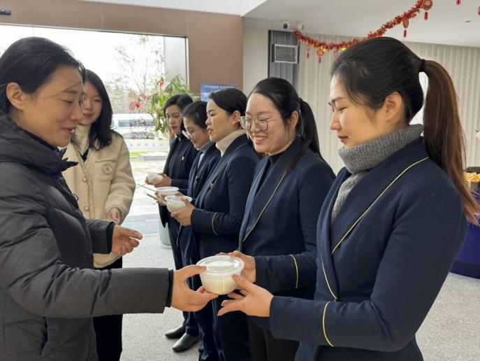 一碗碗熱騰騰的湯圓送到了忙碌在一線的員工手中,所有人吃在嘴里,甜在心里。