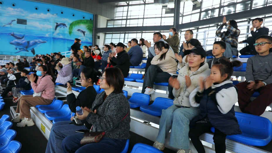 海洋世界劇場的海豚小明星,不僅可愛還身懷絕技,走起路來搖搖擺擺,聰明的海豚們?cè)隈Z獸師的引導(dǎo)下,完成了一個(gè)個(gè)高難度的動(dòng)作,贏得了在場觀眾的陣陣掌聲。