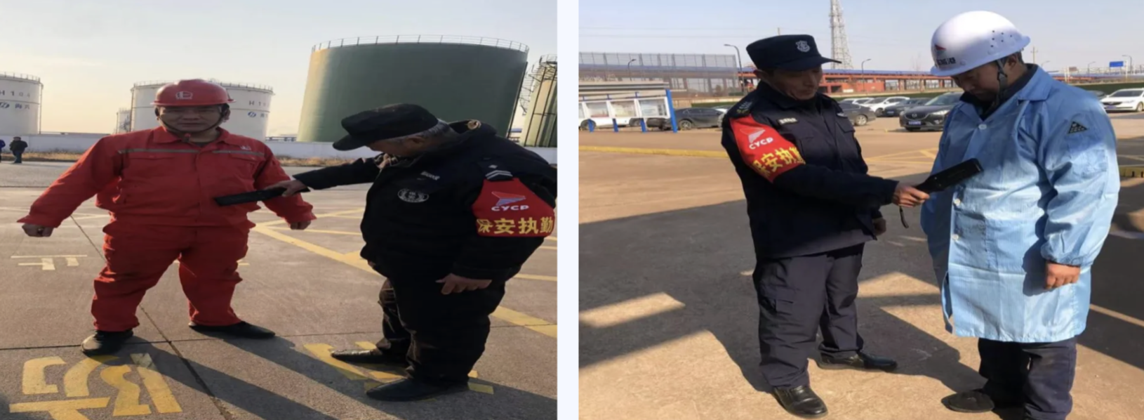 港儲(chǔ)石化公司開(kāi)展進(jìn)場(chǎng)手機(jī)安全管理專(zhuān)項(xiàng)整治行動(dòng),門(mén)衛(wèi)通過(guò)“金屬探測(cè)儀”對(duì)進(jìn)場(chǎng)人員是否攜帶手機(jī)進(jìn)行隨機(jī)檢查,排查重點(diǎn)作業(yè)、重點(diǎn)部位、重點(diǎn)人員、重點(diǎn)時(shí)段的風(fēng)險(xiǎn)隱患,嚴(yán)格落實(shí)現(xiàn)場(chǎng)安全監(jiān)督和防護(hù)措施。
