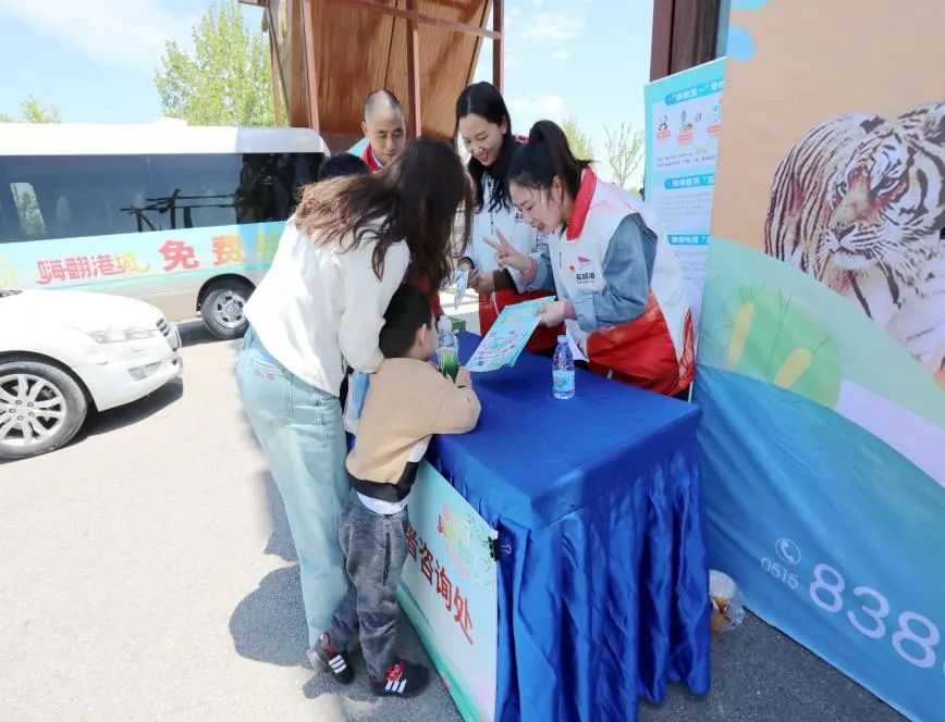 “海洋世界景區門票在哪里購買?”“跨境電商園怎么走?”“接駁車往返多久一趟?”在動物園、海洋世界景區、跨境電商園的志愿服務站前,志愿服務隊隊員們耐心的解答游客問詢,為游客搭起遮涼棚,提供道路指引、泊車接送等服務。他們齊心協力,共同為游客提供安心、舒心、放心的便捷服務。