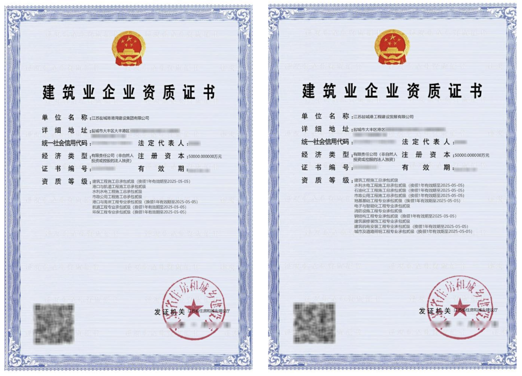 近日,港灣建設集團已順利完成港航總承包、建筑總承包、市政總承包等二級資質的換證工作,并將地基基礎、機電安裝、石油化工、航道工程等所有三級施工資質全部提升至二級。截至目前,港灣建設集團及下屬工程建設公司具備總承包、專業承包等各類二級施工資質共計18項。