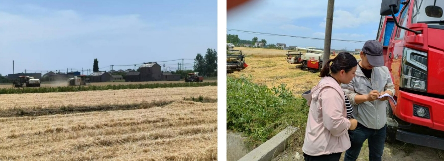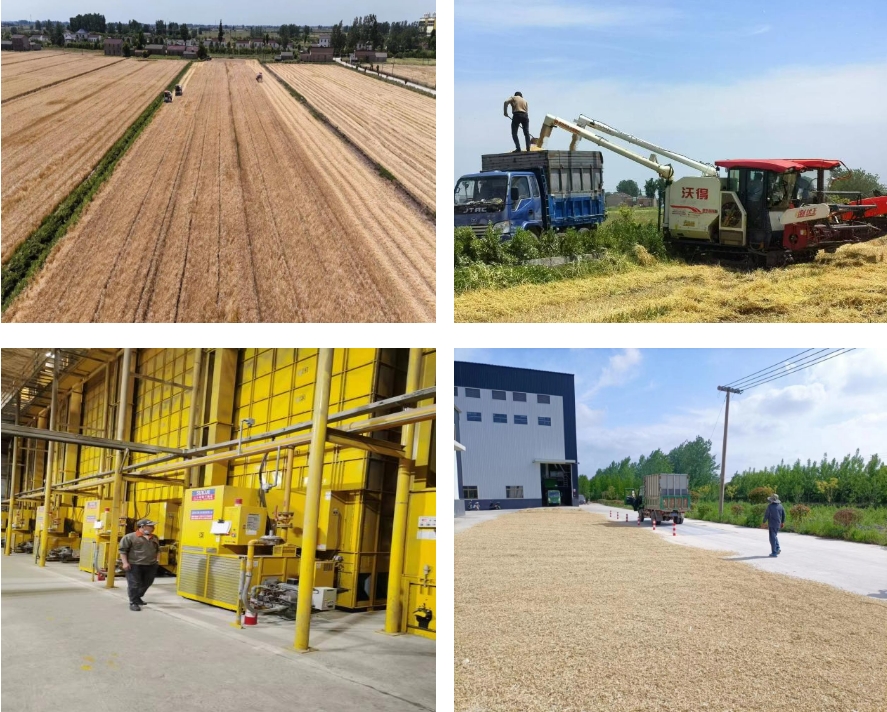 從收割—過磅—烘干,各部門配合生產(chǎn)調(diào)度,全力參與“三夏”大忙,形成“田頭、場頭、倉頭”三位一體的工作機(jī)制。農(nóng)技工作人員深入田間地頭,全面摸排登記農(nóng)田實際情況,時刻關(guān)注轄區(qū)雨情,研判各地塊成熟時間,按照“成熟一片,收割一片”的原則,第一時間組織聯(lián)合收割機(jī)及時入場,確保按期完成收割任務(wù);加工中心的6條種子烘干線馬力全開,做到人歇機(jī)不歇,24小時晝夜不停搶烘收割回來的麥子,確保達(dá)到標(biāo)準(zhǔn)水分,安全入庫歸倉。