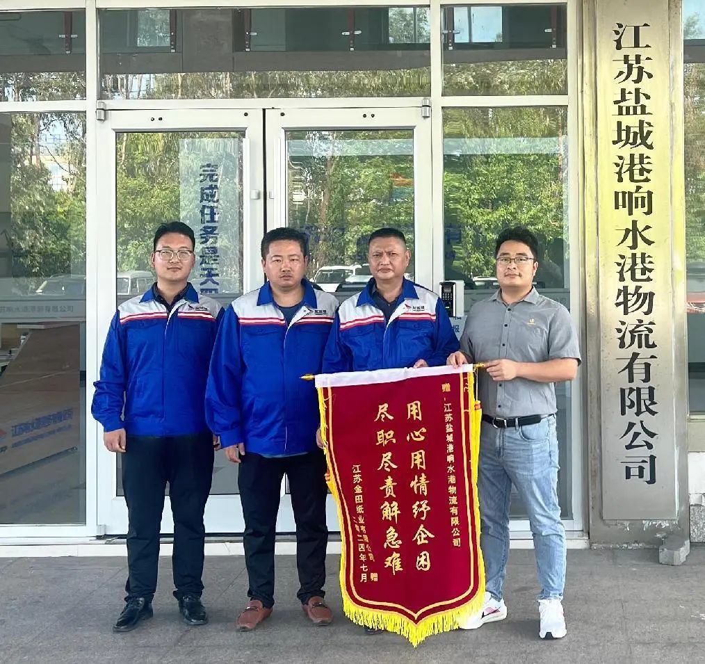 近日,鹽城港響水港區(qū)物流公司收到江蘇金田紙業(yè)有限公司贈(zèng)送的“用心用情紓企困 盡職盡責(zé)解急難”錦旗,來表達(dá)對(duì)港區(qū)在成品紙運(yùn)輸期間優(yōu)質(zhì)服務(wù)的認(rèn)可和感激之情。