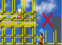 (2)搭設(shè)應(yīng)牢固可靠,升高后要設(shè)防護(hù)欄桿,掛安全網(wǎng)最好有護(hù)身,兜底兩層,嚴(yán)防探頭板;