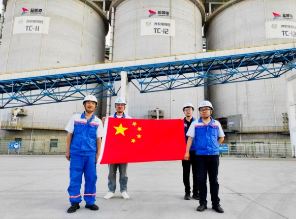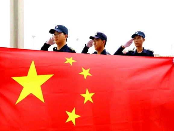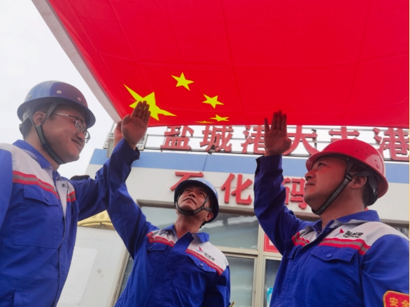 我與國旗合個影丨當“港口藍”遇上“中國紅”