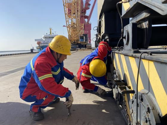 為確保設(shè)備防寒工作得到有效落實(shí),射陽港區(qū)堅(jiān)持問題導(dǎo)向,明確責(zé)任分工,加大檢查監(jiān)督力度,開展安全警示教育及作業(yè)標(biāo)準(zhǔn)方面的專題培訓(xùn),引導(dǎo)干部職工深入識別和分析各類安全風(fēng)險(xiǎn),堅(jiān)持“邊檢查、邊整改、邊提升”的原則,重點(diǎn)關(guān)注門機(jī)、場地機(jī)械等關(guān)鍵設(shè)備,加強(qiáng)數(shù)據(jù)監(jiān)測、設(shè)備基礎(chǔ)檢查力度,準(zhǔn)確掌握設(shè)備變化情況,打好設(shè)備防寒“組合拳”。
