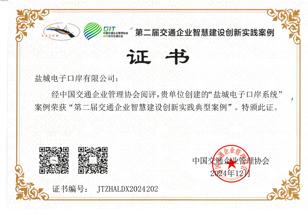 近日,從全國第二屆交通企業(yè)智慧建設(shè)創(chuàng)新實(shí)踐案例發(fā)布會傳來喜訊,鹽城港集團(tuán)“一體化海河聯(lián)運(yùn)集裝箱生產(chǎn)管理系統(tǒng)”“鹽城電子口岸平臺”兩項(xiàng)成果入選第二屆交通企業(yè)智慧建設(shè)創(chuàng)新實(shí)踐-典型案例。