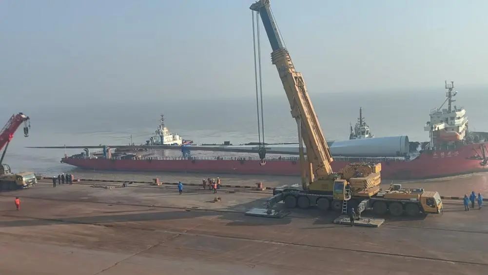147米!國內最長葉片在鹽城港大豐港區順利吊裝