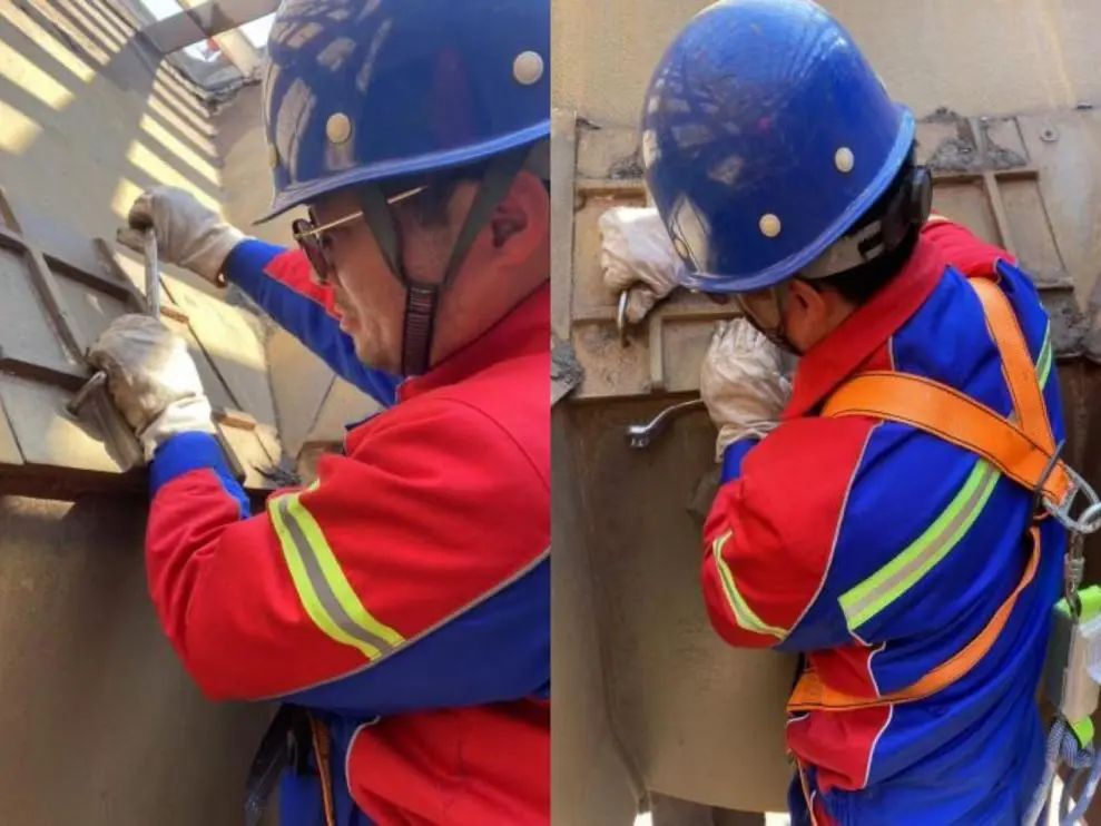 為從根本上解決這一問題,散貨碼頭分公司經多方研究考量,決定對漏斗出料口進行耐磨襯板加裝改造。改造前期,技術人員運用專業測量工具,對漏斗出料口各部位進行精確測量,從長度、寬度到弧度,每一個數據都反復核對,確保耐磨襯板與斗體實現無縫貼合。