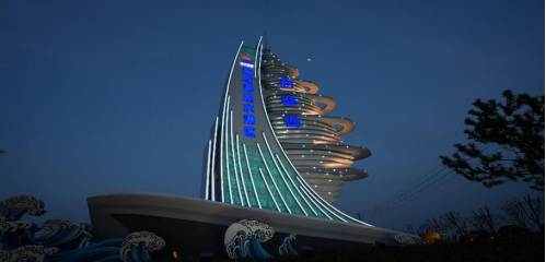 隨著最后一組LED燈光調試完成,鹽城港響水港區入口處,一座高17米的藍白色地標建筑正式點亮。這座以“乘風破浪”為設計理念的“精神堡壘”,歷經三個月攻堅建設,成為展示港區形象、服務城市交通導航的多功能地標。