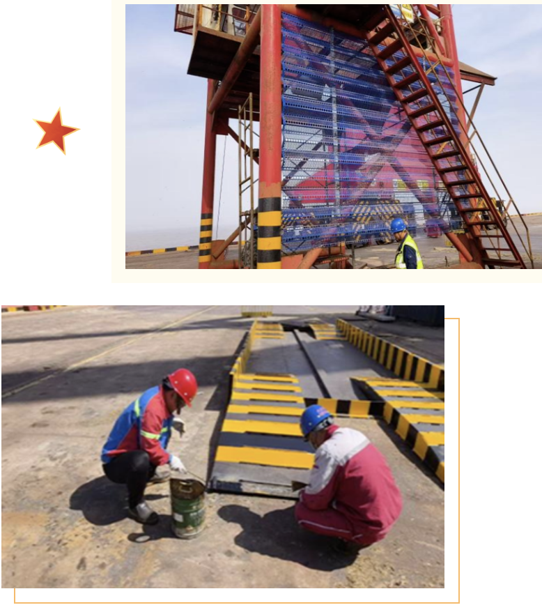 聚焦提升科技創新水平和提質增效能力,全球首創智能“筑港機”助力通用碼頭3號泊位項目順利通過“平安百年品質工程”省級驗收,扎實開展“五小創新”活動,黨員同志帶頭動手改造,對門機漏斗出料口耐磨襯板進行加裝,在漏斗側面加裝金屬防塵網,并自制防堵料錐和洗車平臺,不斷優化生產環節,提升作業效率,卸船機單機作業效率提升25.8%,門機臺時效率同比增長14.5%,為高質量發展注入活力動能。