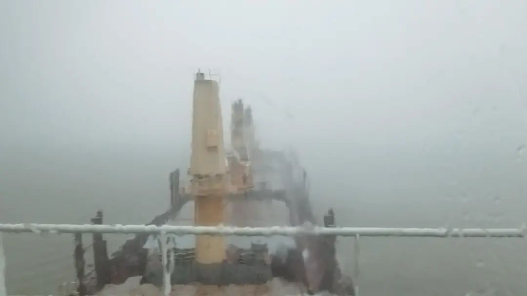 船舶行至燕尾港彎道時(shí),天氣驟然劇變:烏云壓頂,風(fēng)力猛增至九級(jí),暴雨如注,能見(jiàn)度驟降至200米,航道狹窄、險(xiǎn)象環(huán)生。引航員立即指令船方加強(qiáng)值守、雙錨備妥落實(shí)各項(xiàng)應(yīng)急措施。