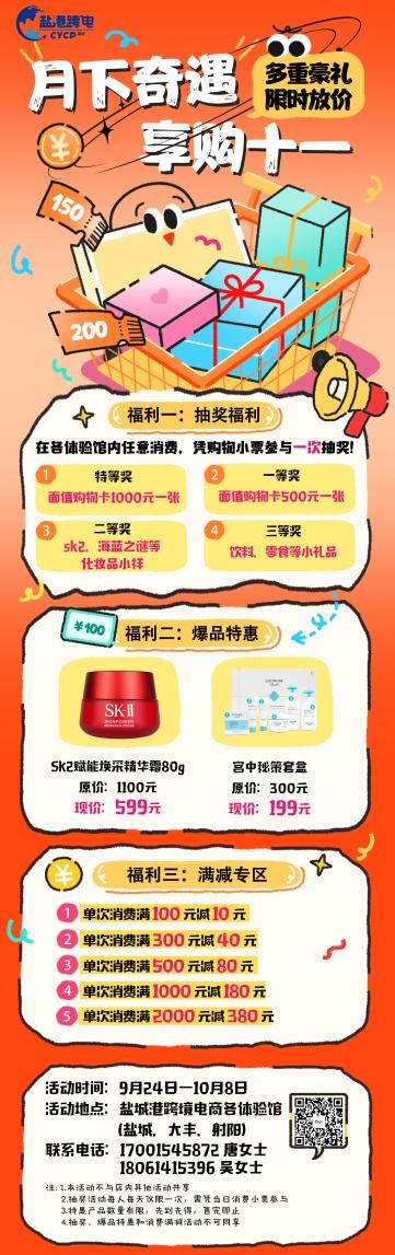 莎士比亞跨境電商國際商貿(mào)小鎮(zhèn)將于2025年9月24日至10月8日推出以“月下奇遇,享購十一”為主題的系列促銷活動(dòng)。活動(dòng)期間,消費(fèi)者可在鹽城、大豐、射陽三地的跨境電商體驗(yàn)館享受多重福利:消費(fèi)即可參與100%中獎(jiǎng)抽獎(jiǎng),獎(jiǎng)品涵蓋千元購物卡、熱門美妝小樣等;單筆消費(fèi)滿100元起即可參與多檔滿減優(yōu)惠,最高立減380元;更有爆款單品直降促銷,如SK2賦能煥采精華霜由原價(jià)1100元優(yōu)惠至599元,誠意回饋顧客。本次活動(dòng)通過線上線下多渠道聯(lián)動(dòng)宣傳,并提前備足貨源、優(yōu)化服務(wù)流程,力求為消費(fèi)者帶來優(yōu)質(zhì)、便捷的購物體驗(yàn),進(jìn)一步激發(fā)節(jié)日消費(fèi)市場(chǎng)活力。