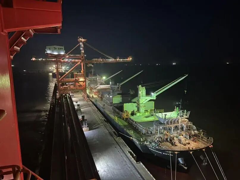 面對木片“質(zhì)量輕、易飄散、易粘黏”的物理特性與皮帶機系統(tǒng)首次適配的挑戰(zhàn),分公司超前謀劃,組建專項技術(shù)攻關(guān)團隊。通過多輪工藝論證和設(shè)備調(diào)試,精準優(yōu)化皮帶機張緊度、輸送傾角等關(guān)鍵參數(shù),采取“三機協(xié)同、分區(qū)作業(yè)”的科學(xué)生產(chǎn)模式,實現(xiàn)卸船機與皮帶機系統(tǒng)的無縫銜接。在107小時的連續(xù)作業(yè)中,系統(tǒng)運行穩(wěn)定高效,未發(fā)生任何堵料、撒漏現(xiàn)象,圓滿完成4萬噸木片接卸任務(wù),翻開輕泡散貨皮帶機作業(yè)新的一頁。