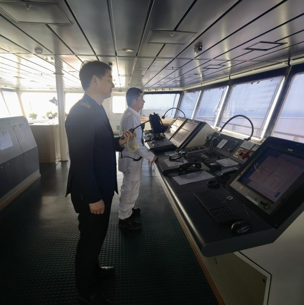 作業(yè)過程中引航員手持對(duì)講機(jī)精準(zhǔn)發(fā)令,拖輪協(xié)同配合穩(wěn)控船身;調(diào)度室里,實(shí)時(shí)數(shù)據(jù)跳動(dòng)間,靠離泊時(shí)間被科學(xué)壓縮。這高效的配合,為海纜吊裝、規(guī)范綁扎擠出了寶貴時(shí)間,讓每一批海纜都能按時(shí)登船,也讓全年引航任務(wù)實(shí)現(xiàn)“零差錯(cuò)”。