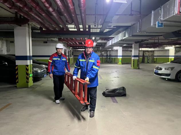演練前期,專項動員培訓會精準劃分巡邏巡查、搶險維修、物資保障、現場協調四組網格化職責,通過典型案例解析與實操技能演示,全方位夯實全員應急處置功底。下午 3 時許,實戰演練正式啟動。“報告消控室!1 號地下車庫一處消防管凍裂,積水已漫至人行通道,存在結冰打滑風險!” 巡邏人員在日常巡檢中敏銳發現險情,第一時間緊急上報,同步完成現場警戒隔離。消控室即刻啟動應急響應機制,快速核實險情位置、預判影響范圍,同步調度搶險維修組、物資保障組趕赴現場,并通知客服人員做好業主信息告知工作。