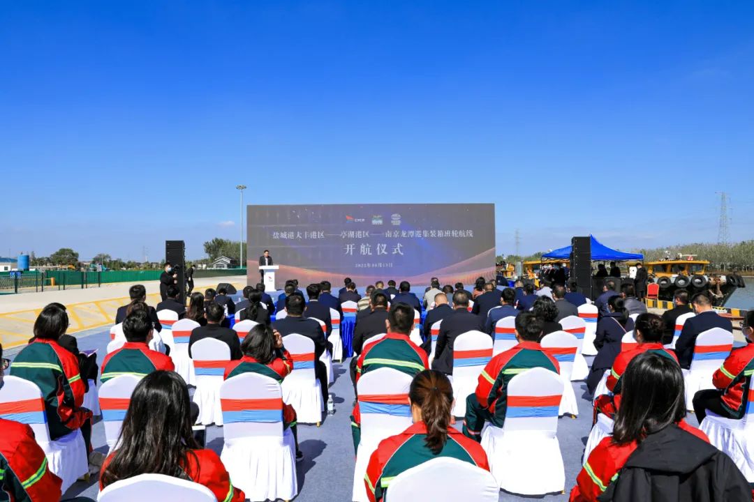 周正雄在致辭中代表集團黨委、董事會對活動的順利舉行表示祝賀。他說,在全國上下喜迎黨的二十大勝利召開之際,舉行鹽城港集團與南京港集團、江蘇遠洋公司簽約暨鹽城港至南京龍潭港航線開航儀式,是繼去年9月28日鹽城港與省港口集團簽約并開通對韓直達航線以來的又一重要時刻,標志著鹽城港與省港各兄弟單位之間關系更緊、合作更密、友誼更深,將進一步助推鹽城港在勇當沿海地區高質量發展排頭兵進程中勇立潮頭、奮楫爭先。今天,鹽城港再次與業內知名、省內重要的港航企業南京港集團、江蘇遠洋公司攜手合作,正式開通至南京龍潭港集裝箱航線,這是認真落實省、市委關于深入推進沿海發展決策部署的一項有效舉措,將有力助推我省港口物流業實現南北聯動、資源共享、優勢互補,構建一條江蘇南北經濟發展的融合新通道,加快長江經濟帶與淮河生態經濟帶之間的交流互通。下一步,鹽城港將持續強化與省港兄弟單位之間更加深入的務實合作,切實按照《江蘇沿海地區發展規劃》的明確要求,暢通面向淮河中上游地區的河海聯動大通道,著力打造綠色、生態、智慧、平安、美麗的沿淮河生態經濟帶和環黃海生態經濟圈“一帶一圈”重要節點樞紐港,為全省“勇挑大梁”貢獻更多港口力量。