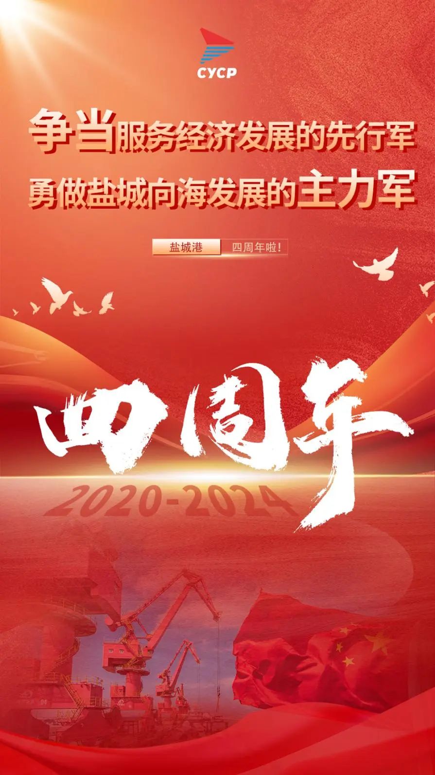 風正潮平,自當揚帆破浪;任重道遠,更需策馬揚鞭。即將邁入第五個年頭,機遇與挑戰并存,希望與困難同在,更要把弘揚鐵軍精神和習近平總書記對港航事業高質量發展的一系列重要講話精神結合起來,以不達目的誓不罷休的精神,努力奮斗,努力再上一個新臺階,再攀一個新高度,再創一個新輝煌!讓我們團結一心,攜手共進,共同開創鹽城港更加美好的未來!