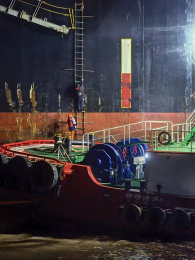 方案既定,迅速行動。大豐港區(qū)內(nèi),值班的“002號”引航員發(fā)現(xiàn)潮汐窗口期恰逢午間,毫不猶豫放棄午休,即刻投身引航作業(yè);“017號”引航員主動請纓、堅(jiān)守崗位,與同事并肩作戰(zhàn)。兩位引航員以身作則、沖鋒在前,以廢寢忘食的奉獻(xiàn)精神,歷時四小時高效推進(jìn)作業(yè),順利完成大豐港區(qū)4艘外輪及1艘危化品船的安全靠泊,用專業(yè)與堅(jiān)守扛起責(zé)任。統(tǒng)一統(tǒng)籌調(diào)度下,濱海港區(qū)的煤炭運(yùn)輸船、LNG船精準(zhǔn)把握高潮時段,平穩(wěn)靠妥對應(yīng)泊位,各港區(qū)引航作業(yè)同步推進(jìn)、無縫銜接,確保了整體任務(wù)進(jìn)度。