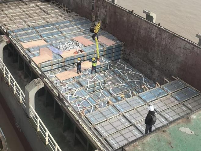 業(yè)務前端專項攻堅,全過程保障高效順暢。為確保新貨種順利落地,港區(qū)攬貨組充分發(fā)揮攻堅作用,提前與客戶、船方深度對接,全面掌握貨物特性、存儲要求與作業(yè)需求。針對光伏玻璃的存儲與轉運要求,量身定制專項卸船及堆存方案,優(yōu)化碼頭前沿與后方堆場的動線銜接,實現(xiàn)“船到即卸、過程跟蹤”,確保了首船作業(yè)各環(huán)節(jié)無縫連接、高效運行。
