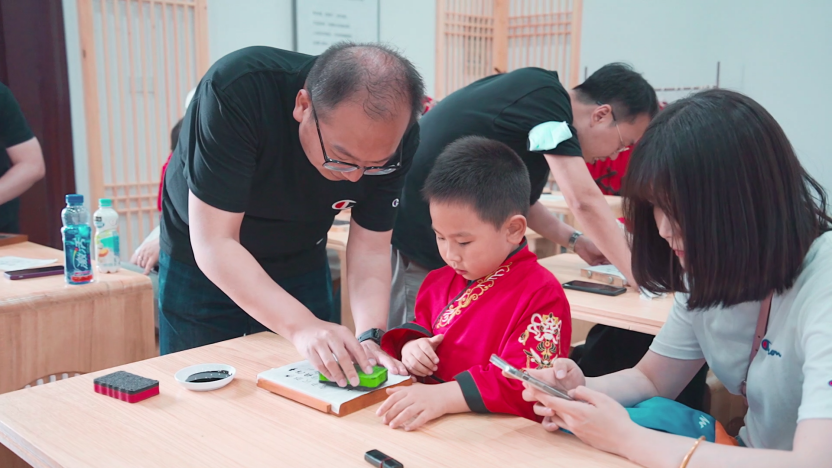 在小瀛臺國學(xué)館里,小朋友們穿著漢服走進國學(xué)課堂,悉心聆聽國學(xué)老師講解,學(xué)習(xí)活字印刷,將自己熟悉的古詩詞用一枚枚活字排列出來,在老師耐心的技術(shù)指導(dǎo)下,家長們也興致高漲地參與進來,從揀字到排版再到印刷,古老的印刷工藝被完美展現(xiàn)。