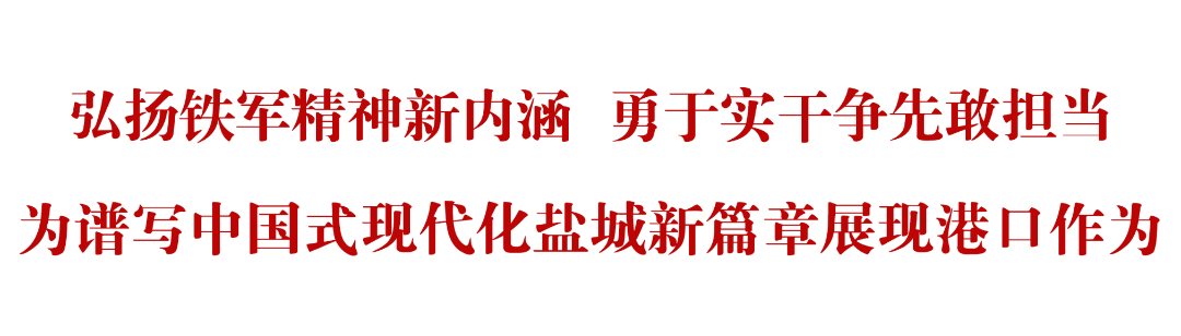 要更加緊密地團結在以習近平同志為核心的黨中央周圍,在市委的堅強領導下,弘揚不怕困難、不畏艱險,勇于斗爭、敢于勝利的鐵軍精神新內涵,以實干爭先譜寫發展答卷,奮力在中國式現代化鹽城新實踐中展現港口作為。
