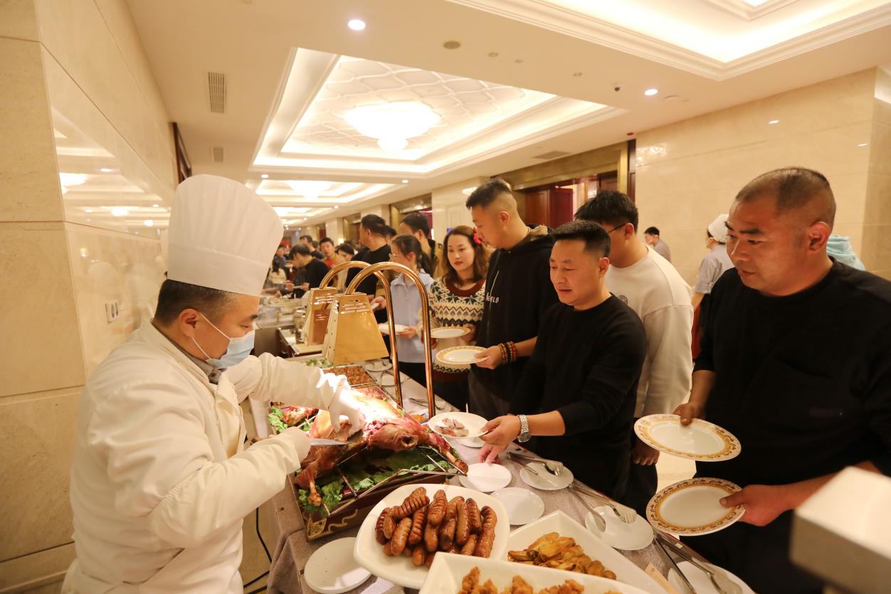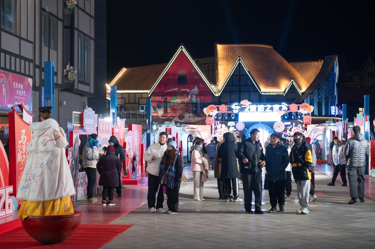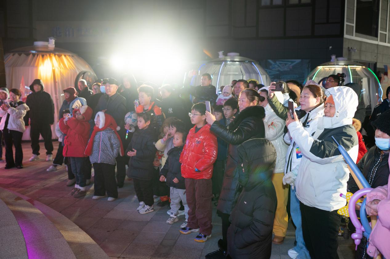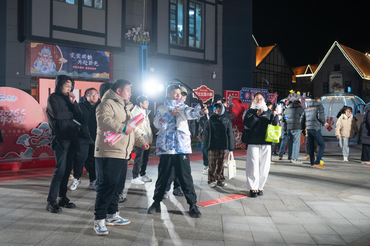 活動(dòng)期間,港泊莎士比亞小鎮(zhèn)也是熱鬧非凡。各跨境電商門店內(nèi),年貨盛宴正酣,顧客們穿梭在貨架間挑選心儀商品,實(shí)付滿200元即可到紅包墻抽獎(jiǎng),有人抽到購物卡喜笑顏開,沒中的也拿著套圈券、擲骰子券玩得不亦樂乎。旁邊的餐飲店同樣人氣爆棚,港泊半島酒店的自助晚宴上,小丑魔術(shù)逗得大家捧腹大笑,烤全羊香氣四溢,讓顧客的味蕾在美食的海洋中暢游。更值得一提的是,國風(fēng)不倒翁互動(dòng)、星空燈光秀等,將跨年氛圍直接拉滿,隨著倒計(jì)時(shí)聲響起,全場(chǎng)共同迎接新年的到來,這一刻,燈光齊開,照亮了整個(gè)夜空,也照亮了每個(gè)人心中的喜悅與希望。