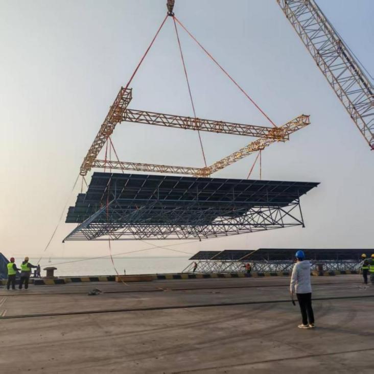 作為國家能源戰略的重要組成部分,海上光伏產業正迎來快速發展期。承接光伏板裝配與出運業務,是響水港區主動服務“雙碳”目標、融入綠色能源產業鏈的關鍵舉措。近年來,港區在鞏固傳統散雜貨運輸優勢的基礎上,持續拓展清潔能源裝備物流服務,已先后承接包括管樁、發電機組、風電設備等在內的多種新能源貨種,為后續拓展新業態積累了豐富經驗。