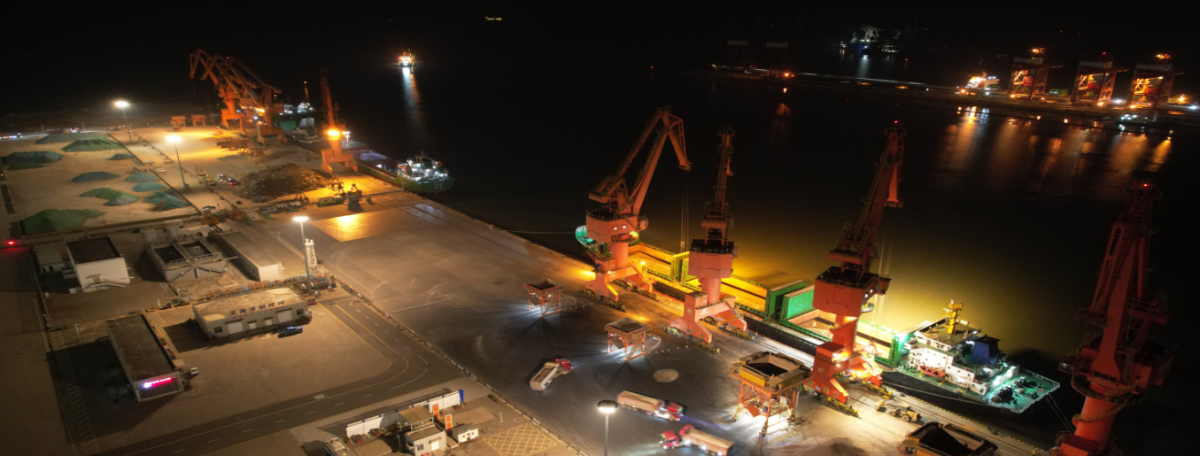 碼頭現場多船在港,晝夜奔忙