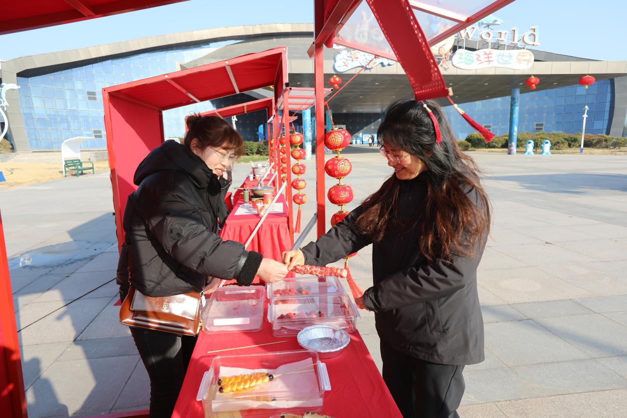 非遺市集上,傳統與現代交織碰撞。這里不僅有精美的非遺手工藝品展示,更有充滿趣味性的傳統游戲。套圈、跳球、射箭等游戲區域前圍滿了游客,大家躍躍欲試,想要一展身手,在游戲中感受傳統民俗的樂趣。玩累了,再來一串酸甜可口的糖葫蘆,那熟悉的味道瞬間喚起了兒時的記憶,為這趟游玩增添了幾分甜蜜。