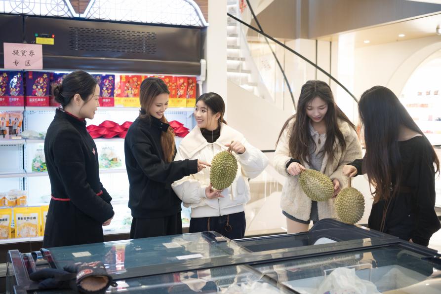 春節期間,公司新引進的馬來西亞A級貓山王榴蓮與澳洲M6-7純種和牛牛排也已火熱開售,成為節日消費的新亮點。兩款產品憑借其優質產地與高端品質,吸引了不少注重生活品質的消費者前來選購,進一步豐富了春節期間的商品供給,提升了門店的整體客單與消費體驗。