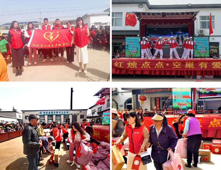 為踐行社會主義核心價值觀,培養港區青年黨團員的社會責任意識,近日,響水港紅燭志愿服務隊攜手縣氣象局、縣公益協會、來到響水縣陳家港鎮四港村開展“紅燭點點 空巢有愛”送溫暖活動,給40名空巢老人送上夏涼踏花被、牛奶、面包等慰問品,并為全村老人奉獻了一臺精美的文藝表演。